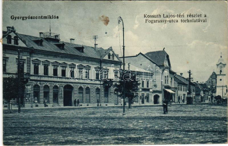 Leírás: Gyergyószentmiklós, Gheorgheni; Kossuth Lajos tér, Fogarassy utca torkolata / square and street (Rb)