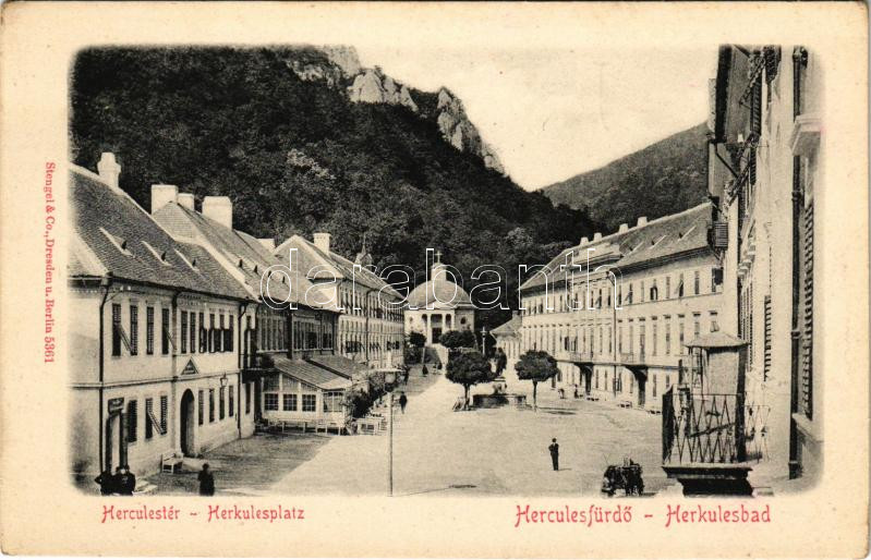 Herkulesfürdő, Baile Herculane; Hercules tér / square https://www.darabanth.com/hu/435-Gyorsarveres/435.0/Kepeslapok/Erdely~2500008/Herkulesfurdo-Baile-Herculane-Hercules-ter-square~II2818316