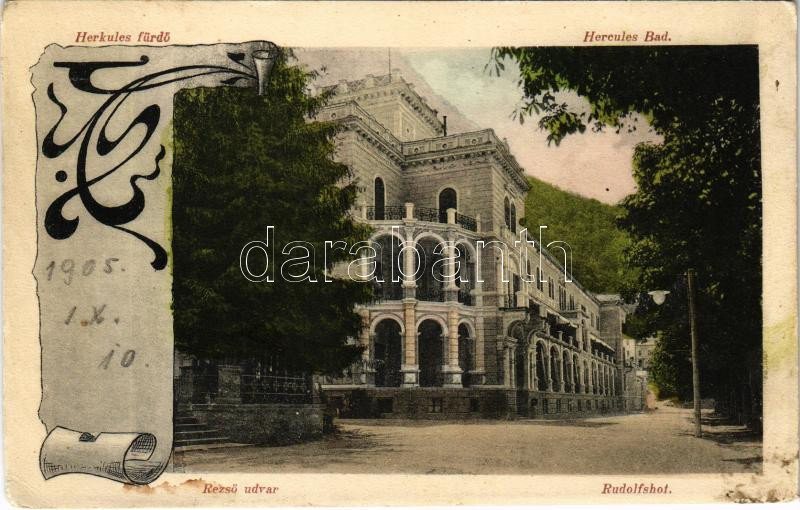 Herkulesfürdő, Baile Herculane; Rezső udvar. Divald Károly 915. / Rudo... https://www.darabanth.com/hu/435-Gyorsarveres/435.0/Kepeslapok/Erdely~2500008/Herkulesfurdo-Baile-Herculane-Rezso-udvar-Divald-Karoly-915-Rudolfshof-spa-Art-Nouveau-~II2811841