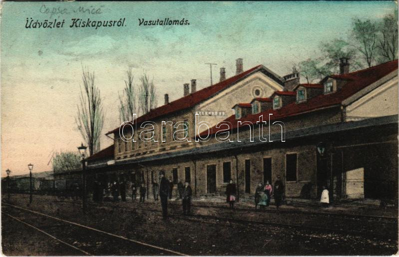Leírás: Kiskapus, Kis-Kapus, Kleinkopisch, Copsa Mica; Vasútállomás / Gara / railway station