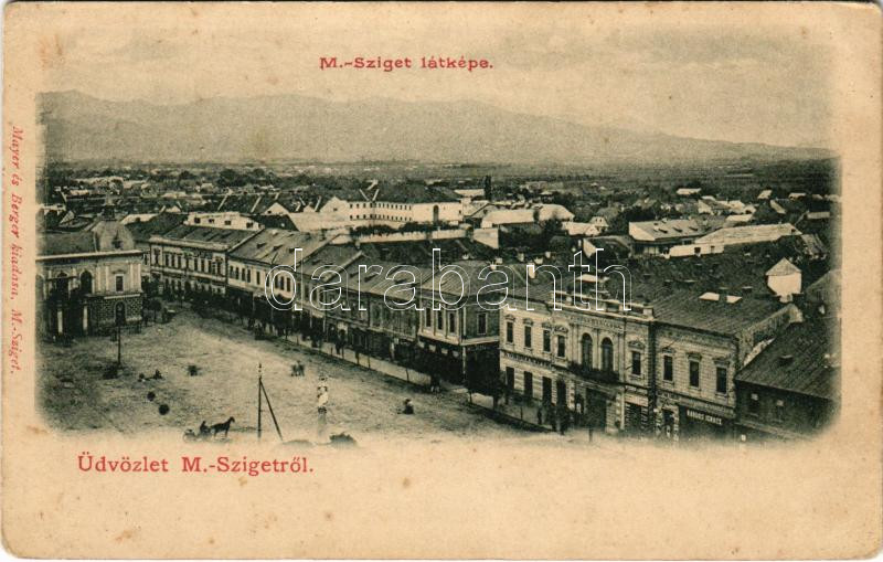 Leírás: Máramarossziget, Sighet, Sighetu Marmatiei; Fő tér, Kardos Ignác üzlete, Korona kávéház / main square, shops , cafe (EK)