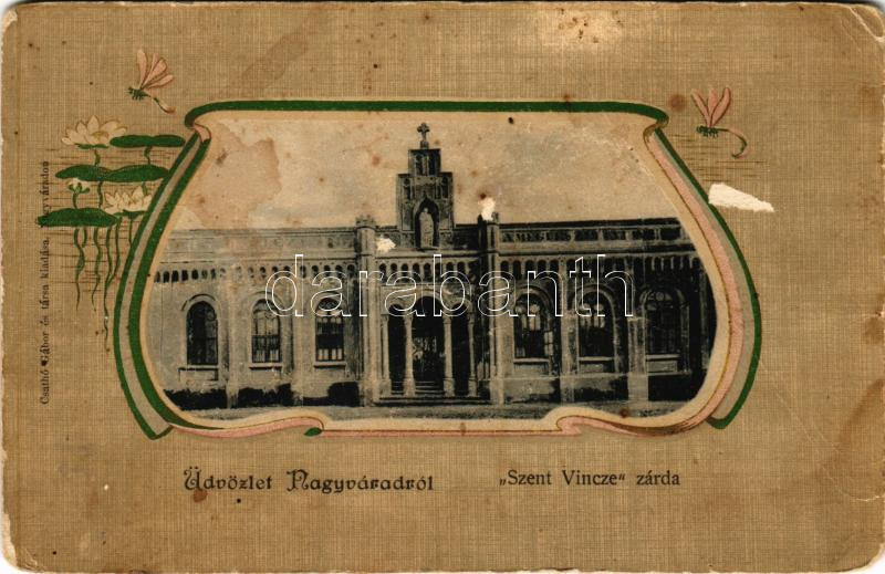 Nagyvárad, Oradea; Szent Vince zárda. Csathó Gábor és társa kiadása / ... https://www.darabanth.com/hu/435-Gyorsarveres/435.0/Kepeslapok/Erdely~2500008/Nagyvarad-Oradea-Szent-Vince-zarda-Csatho-Gabor-es-tarsa-kiadasa-nunnery-Art-Nouveau-l~II2812703