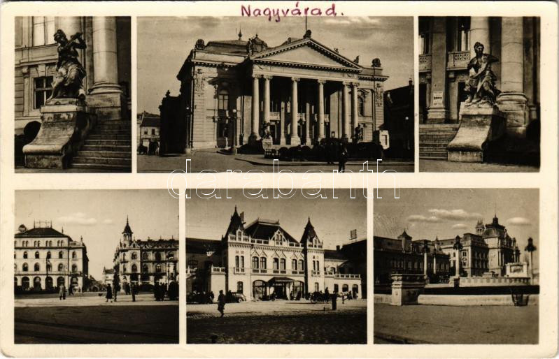 Leírás: Nagyvárad, Oradea; színház és szobrok / theatre and statues (EK)