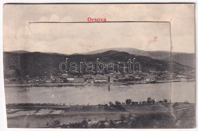 Leírás: Orsova. Leporello belül vasútállomás, Ozanic szálloda, Scheinberger áruháza / leporellocard with shop, railway station and hotel (vágott / cut)