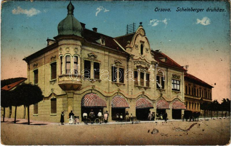 Orsova, Scheinberger Mór áruháza / shop (EK) https://www.darabanth.com/hu/435-Gyorsarveres/435.0/Kepeslapok/Erdely~2500008/Orsova-Scheinberger-Mor-aruhaza-shop-EK~II2811848