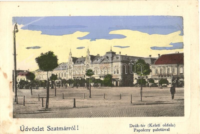 Szatmárnémeti, Szatmár, Satu Mare; Deák tér (keleti oldala), Papolczy ... https://www.darabanth.com/hu/435-Gyorsarveres/435.0/Kepeslapok/Erdely~2500008/Szatmarnemeti-Szatmar-Satu-Mare-Deak-ter-keleti-oldala-Papolczy-palota-uzletek-Hollos~II1785930
