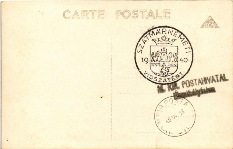 Leírás: Szatmárnémeti, Szatmár, Satu Mare; Deák tér, üzletek / square, shops. photo + "1940 Szatmárnémeti visszatért" So. Stpl.