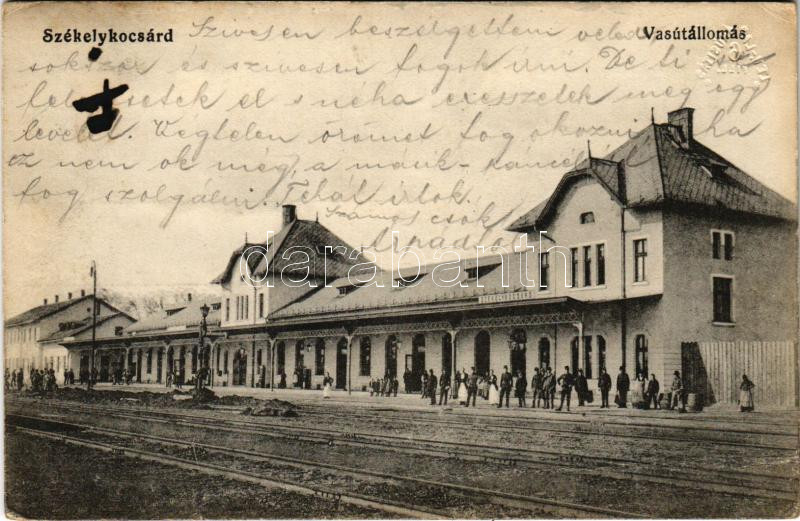 Leírás: Székelykocsárd, Kocsárd, Lunca Muresului; vasútállomás. Vasúti levelezőlapárusítás 5916. / railway station (fa)