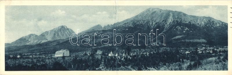 Leírás: Újtátrafüred, Neu-Schmecks, Novy Smokovec; kihajtható panorámalap, szálloda. G. Bányász kiadása / foldable panoramacard, hotel (hajtásnál gyűrött / crease)