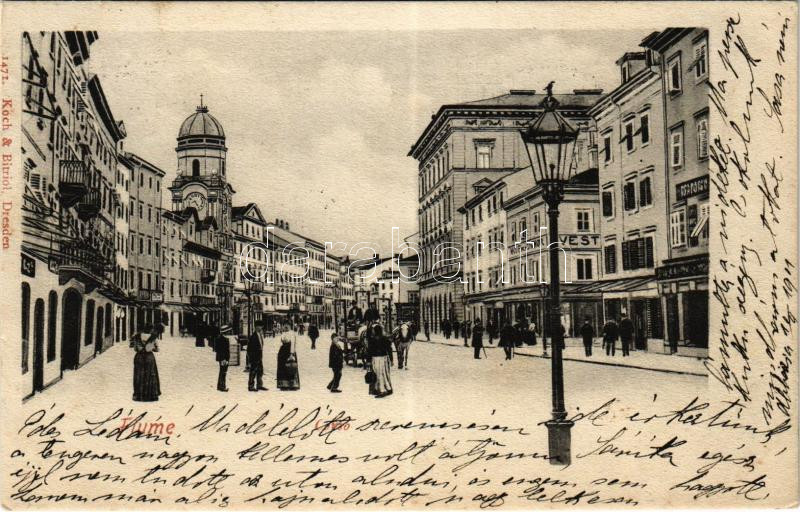 Leírás: 1901 Fiume, Rijeka; Corso / street view, shops. Koch & Bitriol