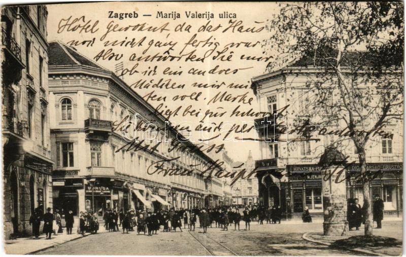 Zagreb, Agram, Zágreb; Marija Valerija ulica / street view, shops (EK) https://www.darabanth.com/hu/435-Gyorsarveres/435.0/Kepeslapok/Horvatorszag~2500010/Zagreb-Agram-Zagreb-Marija-Valerija-ulica-street-view-shops-EK~II2824402