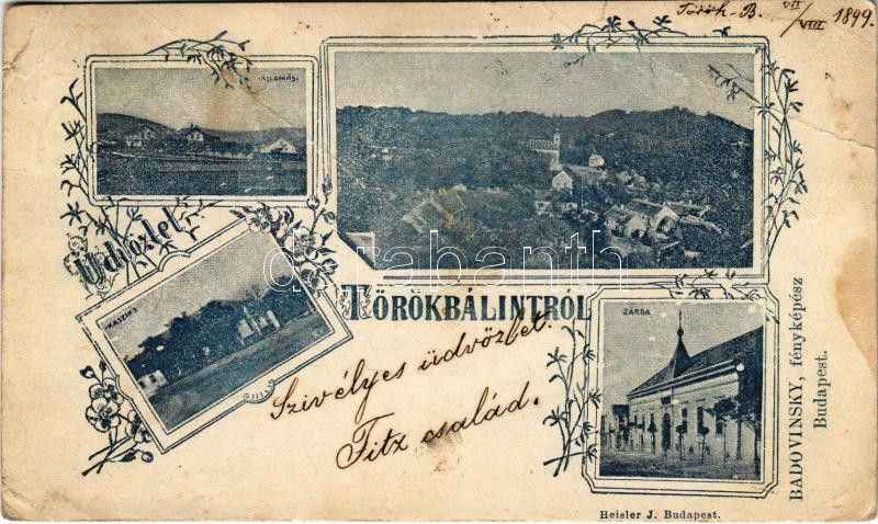 Leírás: 1899 (Vorläufer) Törökbálint, vasútállomás, gőzmozdony, vonat, látkép, kaszinó, zárda. Budovinsky fényképész. Art Nouveau, floral (fa)