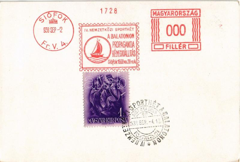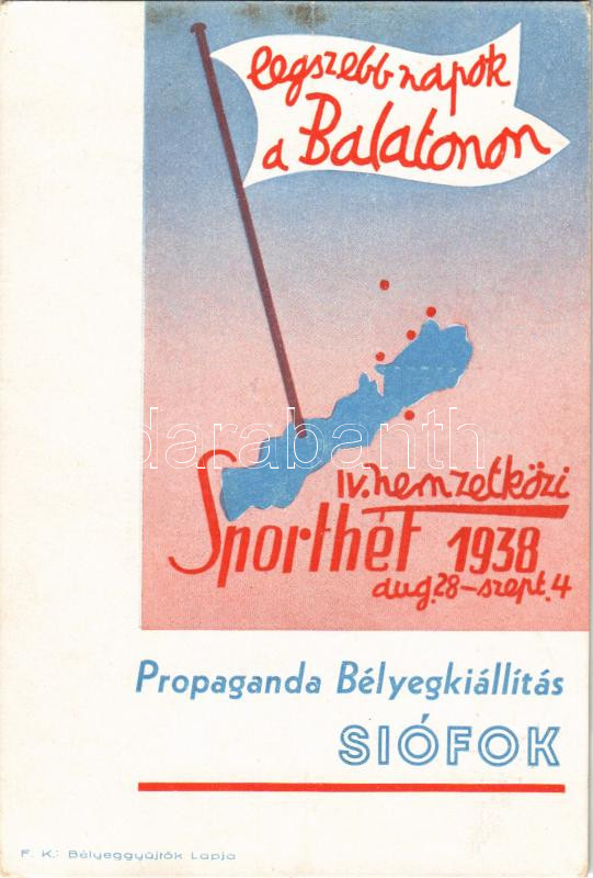 1938 Siófok, IV. Nemzetközi Sporthét, Propaganda Bélyegkiállítás. Legs... https://www.darabanth.com/hu/435-Gyorsarveres/435.0/Kepeslapok/Magyarorszag~2500004/1938-Siofok-IV-Nemzetkozi-Sporthet-Propaganda-Belyegkiallitas-Legszebb-napok-a-Balatonon-~II2813359