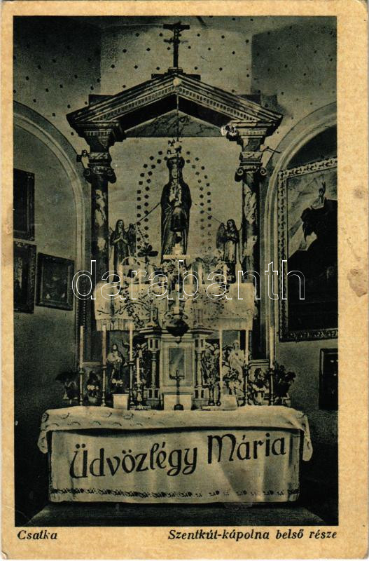 Csatka, Szentkút kápolna belső része. Biróczkiné kiadása https://www.darabanth.com/hu/435-Gyorsarveres/435.0/Kepeslapok/Magyarorszag~2500004/Csatka-Szentkut-kapolna-belso-resze-Biroczkine-kiadasa~II2815607