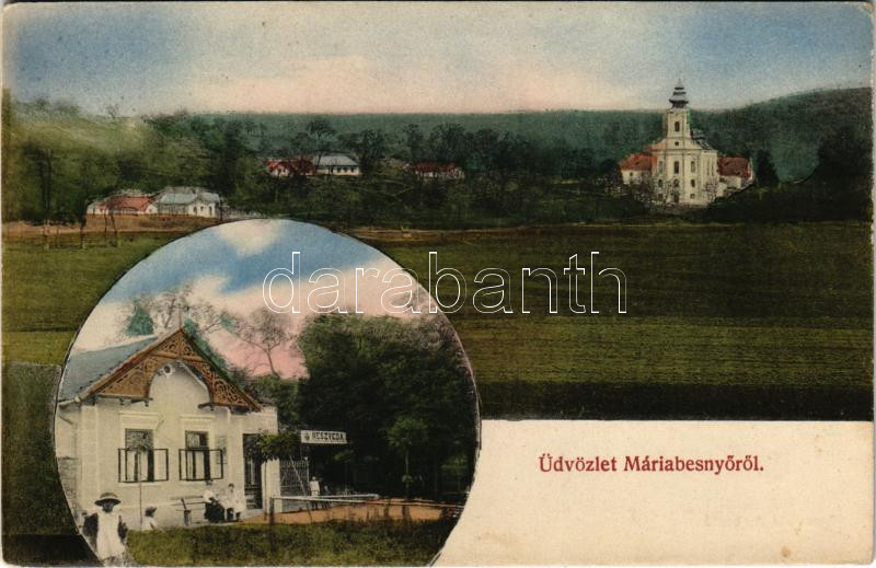 Leírás: Máriabesnyő (Gödöllő), látkép, Neszveda Antal vendéglője és saját kiadása