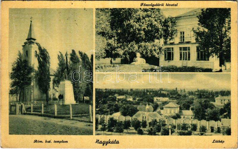 Leírás: Nagykáta, Római katolikus templom, főszolgabírói hivatal. Káló János kiadása (EK)