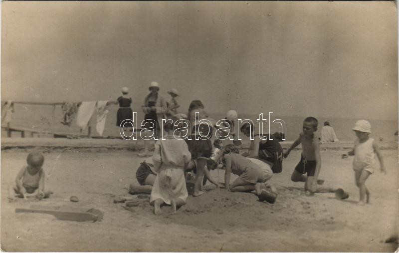 Zamárdi, Balatonzamárdi; homokozó gyerekek a strandon. photo https://www.darabanth.com/hu/435-Gyorsarveres/435.0/Kepeslapok/Magyarorszag~2500004/Zamardi-Balatonzamardi-homokozo-gyerekek-a-strandon-photo~II2816114