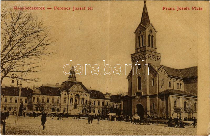 1908 Nagybecskerek, Zrenjanin, Veliki Beckerek; Ferenc József tér, Római katolikus templom, piac. W.L. 1009. / Franz Josefs Platz / square, Catholic church, market (Rb)