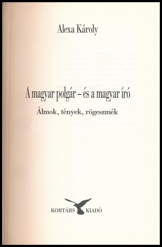 Alexa Károly: A magyar polgár- és a magyar író. Álom, tények, rögeszmé... https://www.darabanth.com/hu/435-Gyorsarveres/435.0/Konyvek/Konyvek-Egyeb-ritkasagok~2000022/Alexa-Karoly-A-magyar-polgar-es-a-magyar-iro-Alom-tenyek-rogeszmek-Bp-2003-Korta~II2645339