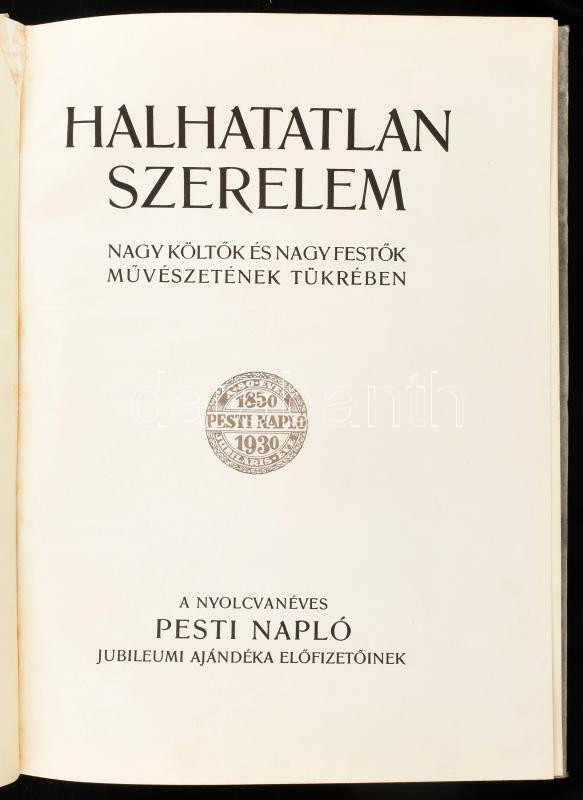 Halhatatlan szerelem. Nagy költők és nagy festők művészetének tükrében. Szerk.: Dr. Mikes Lajos. A nyolcvanéves Pesti Napló ajándéka előfizetőinek. Bp., 1930, Pesti Napló. Fekete-fehér és színes képekkel, könyvdíszekkel illusztrálva. Kiadói egészvászon-kötés, kevés kopással