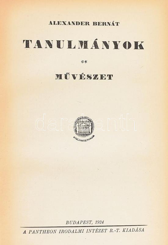 Alexander Bernát: Tanulmányok. I. köt.: Művészet. Bp., 1924, Pantheon,... https://www.darabanth.com/hu/435-Gyorsarveres/435.0/Konyvek/Konyvek-Epiteszet-muveszet~2000010/Alexander-Bernat-Tanulmanyok-I-kot-Muveszet-Bp-1924-Pantheon-221plus1-p-Atkotott-e~II2813842