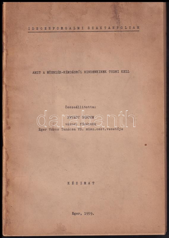 Amit a műemlék-kérdésről mindenkinek tudni kell. Idegenforgalmi Szaktanfolyam. Összeáll.: Hevesy Sándor.