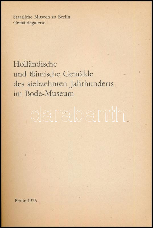 Holländische und flämische Gemälde des siebzehnten Jahrhunderts im Bode-Museum. (Kiállítási katalógus). Berlin, 1976, Staatliche Museen zu Berlin. Fekete-fehér képekkel illusztrálva. Német nyelven. Kiadói papírkötés, kissé kopott borítóval.