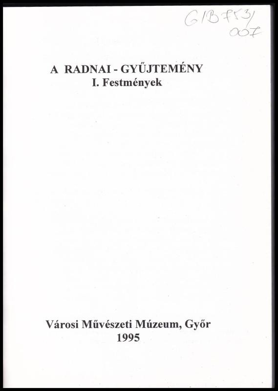 N. Mészáros Júlia: A Radnai-gyűjtemény I. - Festmények. Győr, 1995, Városi Művészeti Múzeum. Megjelent 300 példányban. Színes képekkel, többek közt Rippl-Rónai József, Egry József, Derkovits Gyula, Bernáth Aurél, Barcsay Jenő műveinek reprodukcióival illusztrált. Kiadói papírkötésben.
