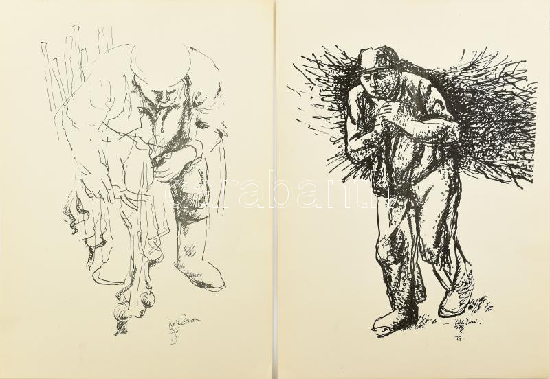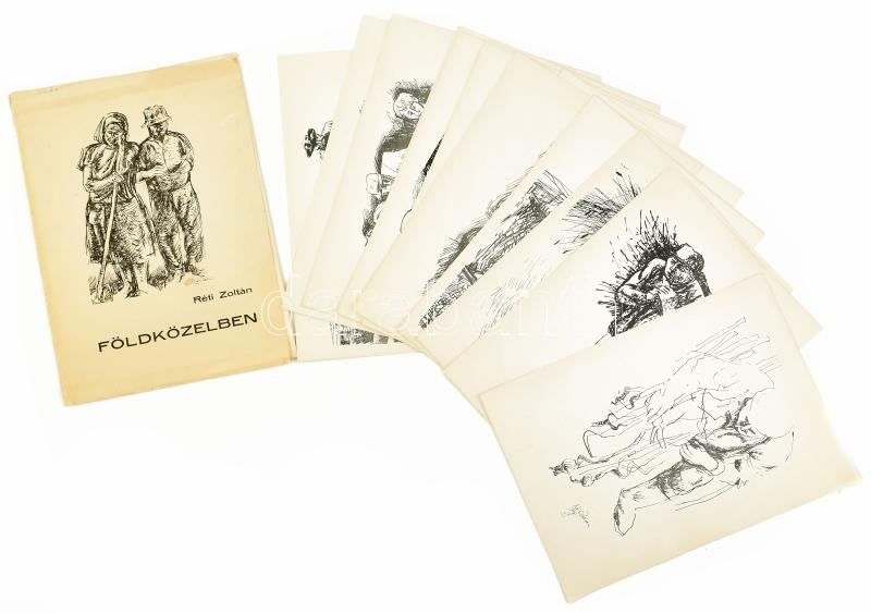 Réti Zoltán: Földközelben. Réti Zoltán rajzai, Kerényi Ferenc előszavával. Balassagyarmat, 1981, k.n., 1 p. + 20 t. Kiadói papírmappában, a mappa kissé sérült. Megjelent 500 példányban.
