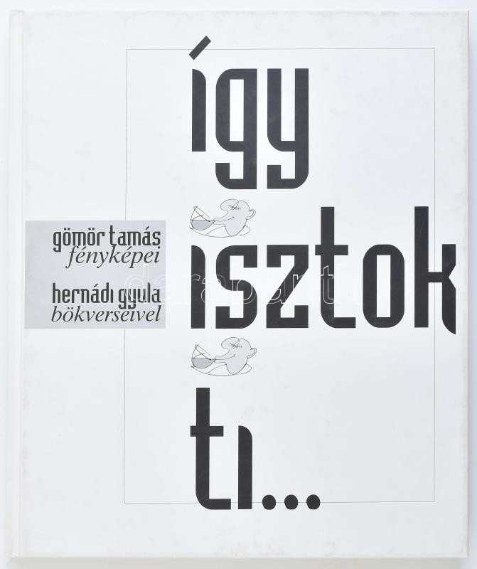 Leírás: így isztok ti... Gömör Tamás fényképei Hernádi Gyula bökverseivel. 1998, GMR Reklámügynökség. Kiadói kartonált kötés, kissé kopottas állapotban.