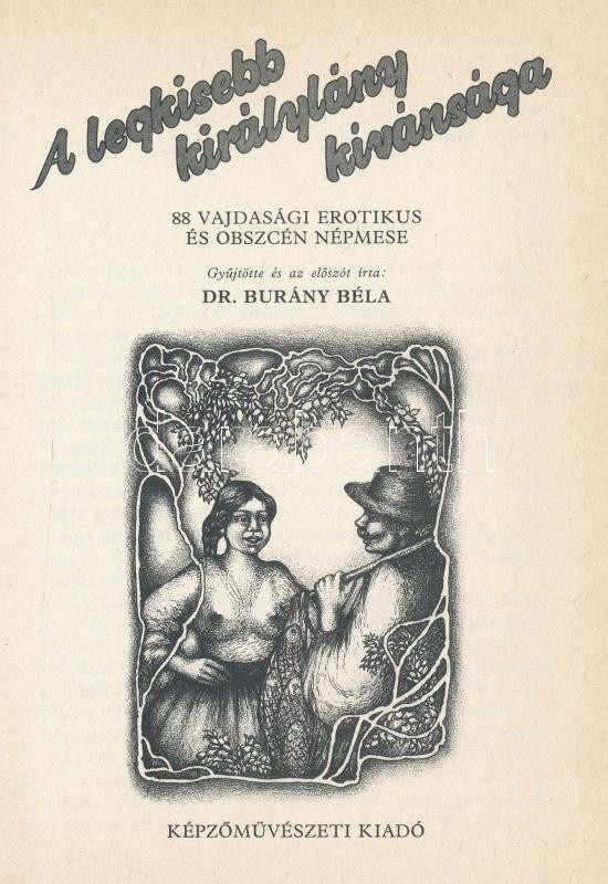 Burány Béla: A legkisebb királylány kívánsága. 88 vajdasági erotikus és obszcén népmese. Gyűjtötte és az előszót írta Dr. - -. Bp., 1990., Képzőművészeti Kiadó. Kiadói kartonált papírkötés.