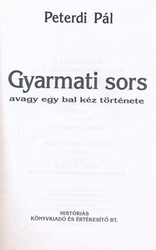 Leírás: Peterdi Pál: Gyarmati sors avagy egy bal kéz története. Bp.,1996, Históriás. Fekete-fehér fotókkal illusztrált. Kiadói papírkötés.