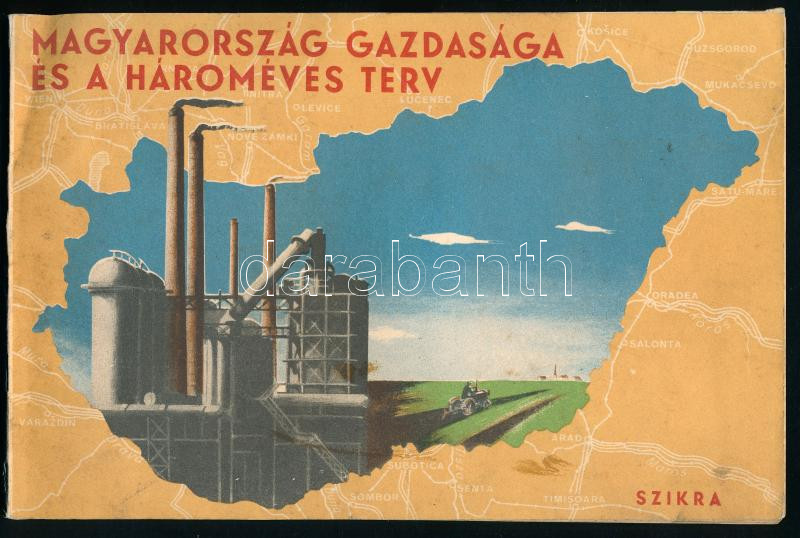 Leírás: 1950 Magyarország gazdasága és a hároméves terv. Szerk.: Markos György. Berei Andor előszavával. Bp.,én.,Szikra, 48 p. Gazdag képanyaggal illusztrált. Kiadói papírkötés, foltos borítóval, kis lapszéli szakadással, "Magyar Földmívelésügyi Minisztérium ajándékkönyve" bélyegzéssel.