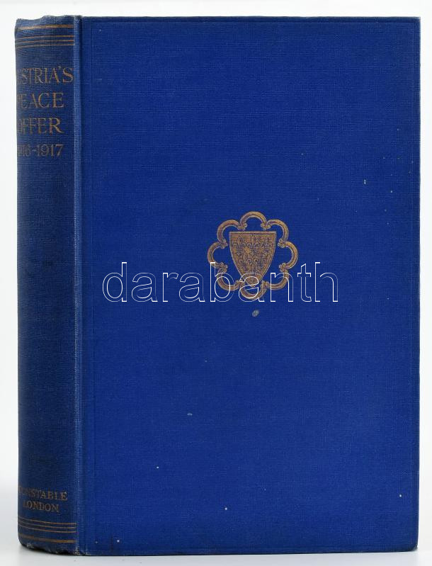 G[eorges] de Manteyer: Austria's peace offer 1916-1917. With and introductory letter by Prince Sixte de Bourbon. London, 1921., Constable and Co., VIII+360 p. + 3 t. Angol nyelven. Kiadói aranyozott egészvászon-kötés, a borítón kis kopásnyomokkal, két kihajtható tábla fénymásolattal pótolt.