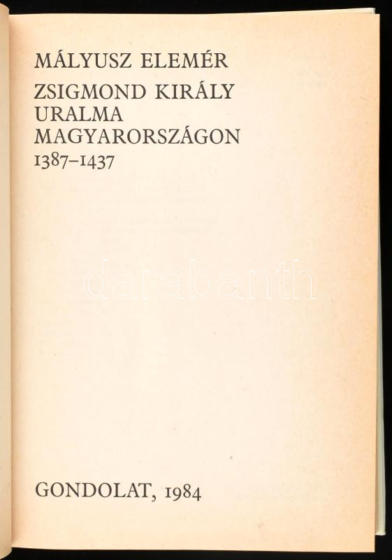 Mályusz Elemér: Zsigmond király uralma Magyarországon. 1387-1437. Bp.,... https://www.darabanth.com/hu/435-Gyorsarveres/435.0/Konyvek/Konyvek-Tortenelem~2000008/Malyusz-Elemer-Zsigmond-kiraly-uralma-Magyarorszagon-1387-1437-Bp-1984-Gondolat-Kiadoi-e~II2747333