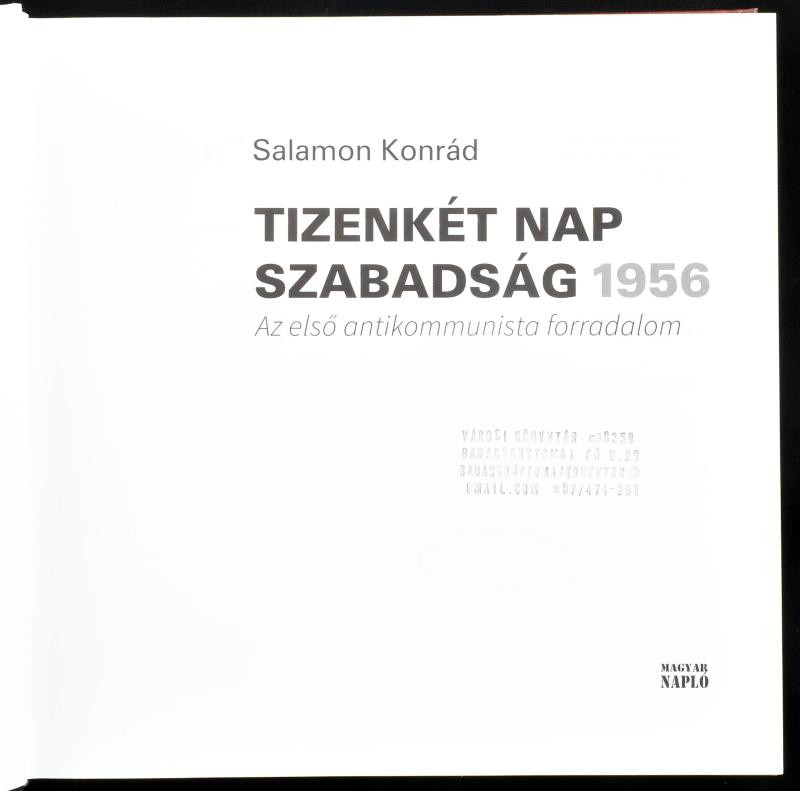 Salamon Konrád:Tizenkét nap szabadság 1956. Az első antikommunista forradalom. Bp., 2014., Magyar Napló. Kiadói kartonált papírkötés, volt könyvtári példány.