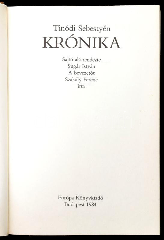 Tinódi Sebestyén: Krónika. Sajtó alá rendezte Sugár István. A bevezetőt írta Szakály Ferenc. Bibliotheca Historica. Bp., 1984, Európa. Kiadói egészvászon-kötés, kiadói papír védőborítóval..