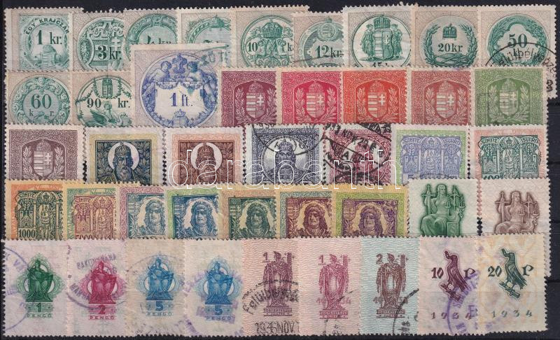 Leírás: 1891-1934 42 klf régi okmánybélyeg, benne 1 db csonka sor