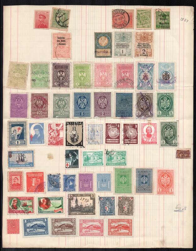 Leírás: Jugoszlávia 58 db régi okmánybélyeg közte adománybélyegek, levélzárók, stb.