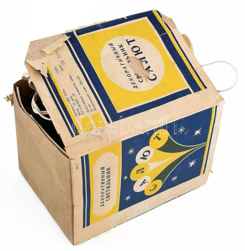 Leírás: 1984 "Szaljut" szovjet gyártmányú dekorációs lámpa, nem kipróbált, fellelt állapotban, eredeti dobozában