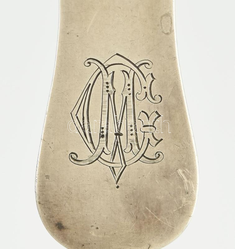 Ezüst(Ag) monogramos tejmerő kanál, jelzett, h: 21,5 cm, nettó: 76 g https://www.darabanth.com/hu/435-Gyorsarveres/435.0/Nemesfem-disztargyak-ekszerek-dragakovek/Nemesfem-disztargyak-ekszerek-dragakovek~500031/EzustAg-monogramos-tejmero-kanal-jelzett-h-21-5-cm-netto-76-g~II2822583