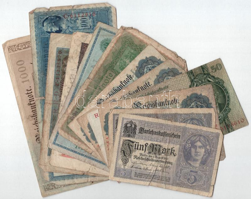 Német Birodalom / Németország / Weimari Köztársaság 1908-1923. 12db vegyes bankjegy T:III-IV