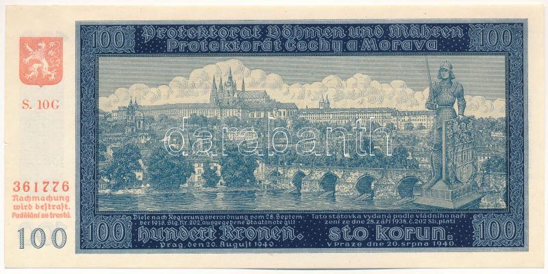Német Harmadik Birodalom / Cseh-Morva Protektorátus 1940. 100K "S.10 G 361776" II. kiadás T:I- apró oldalsó szakadások