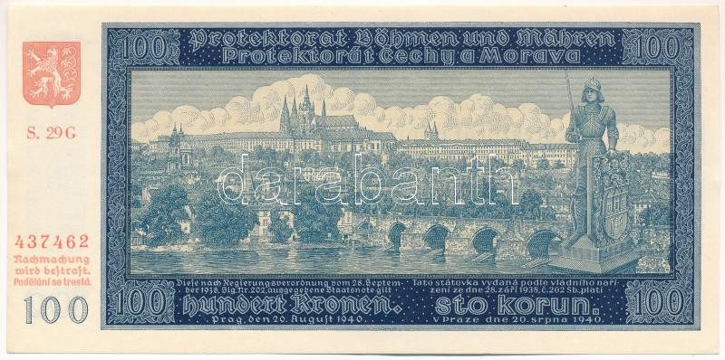 Német Harmadik Birodalom / Cseh-Morva Protektorátus 1940. 100K "S.29 G 437462" II. kiadás T:I,I-