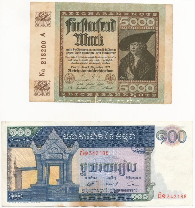 Leírás: Németország / Weimari Köztársaság 1922. 1000M (3db) + 1922. 5000M + Kambodzsa 1972. 100R T:III
