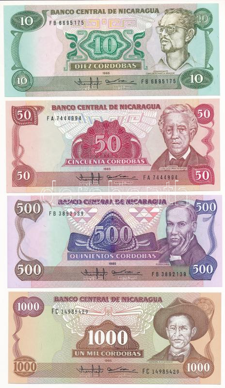 Nicaragua 1985. 10 Cordobas + 50 Cordobas + 500 Cordobas + 1000 Cordobas C:UNC,AU