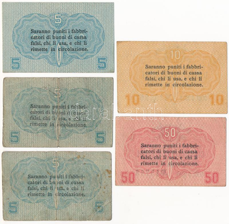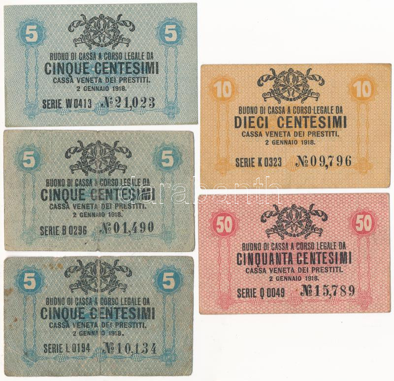 Leírás: Olaszország / Velence / Osztrák-magyar megszállás 1918. 5c (3x) + 10c + 50c + T:I--IV