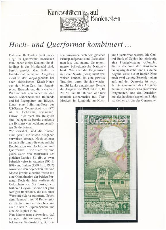 Srí Lanka 1987. 10R német nyelvű "Kuriositäten auf Banknoten" tájékoztatólappal T:I