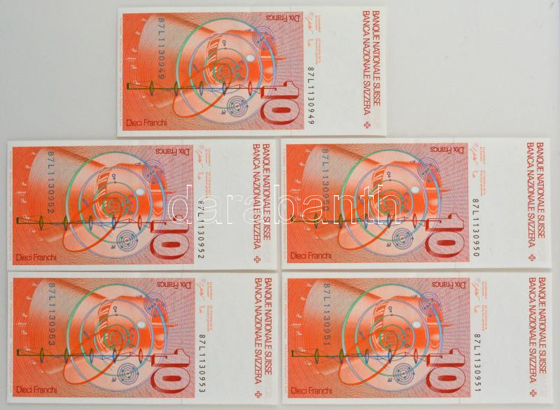 Leírás: Svájc 1987. 10Fr (5db) sorszámkövetők "87L1130949 - 87L1130953" T:II
