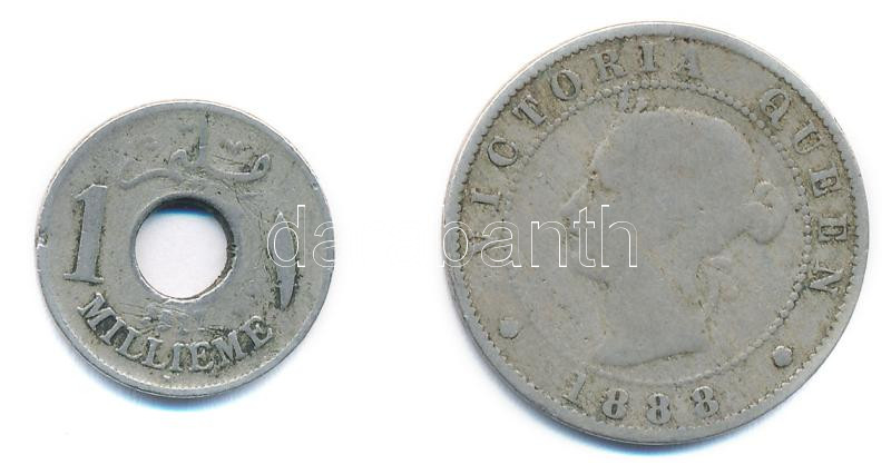 Leírás: Egyiptom 1917. 5m Cu-Ni + Jamaika 1888. 1/2P Cu-Ni "Viktória" T:2- patina